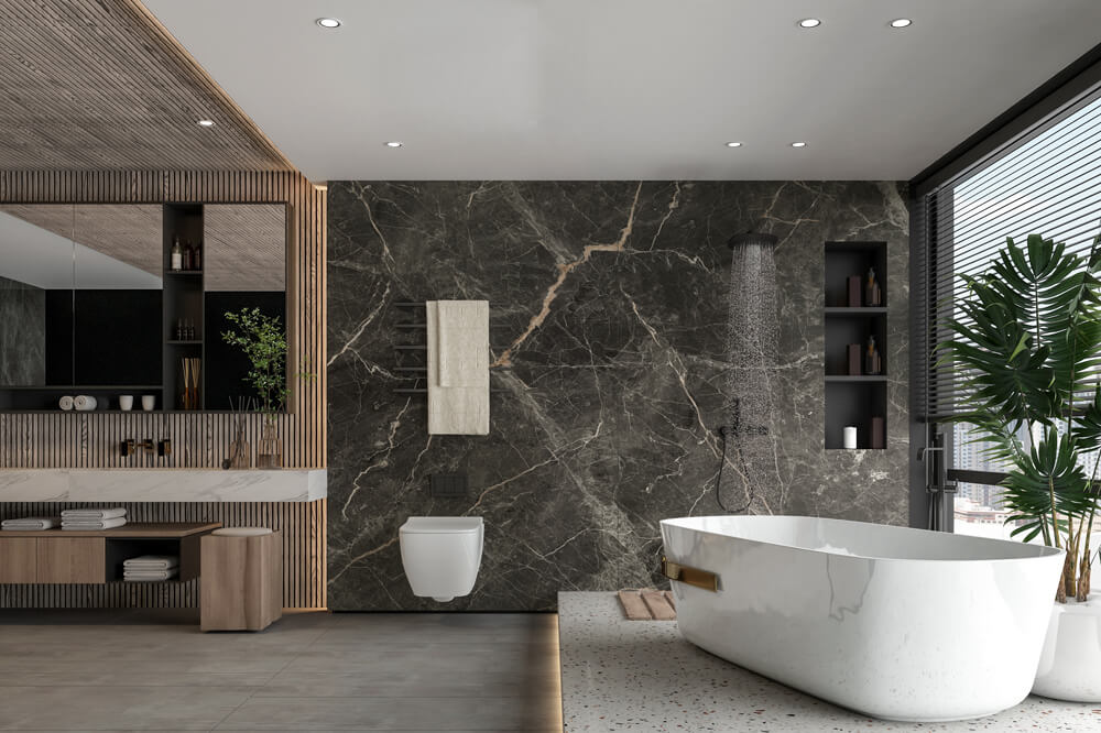 Create a luxurious and spa-like atmosphere in bathrooms with DiTuo porcelain slabs. Their water resistance and stunning aesthetics make them perfect for vanities, shower walls, and flooring.