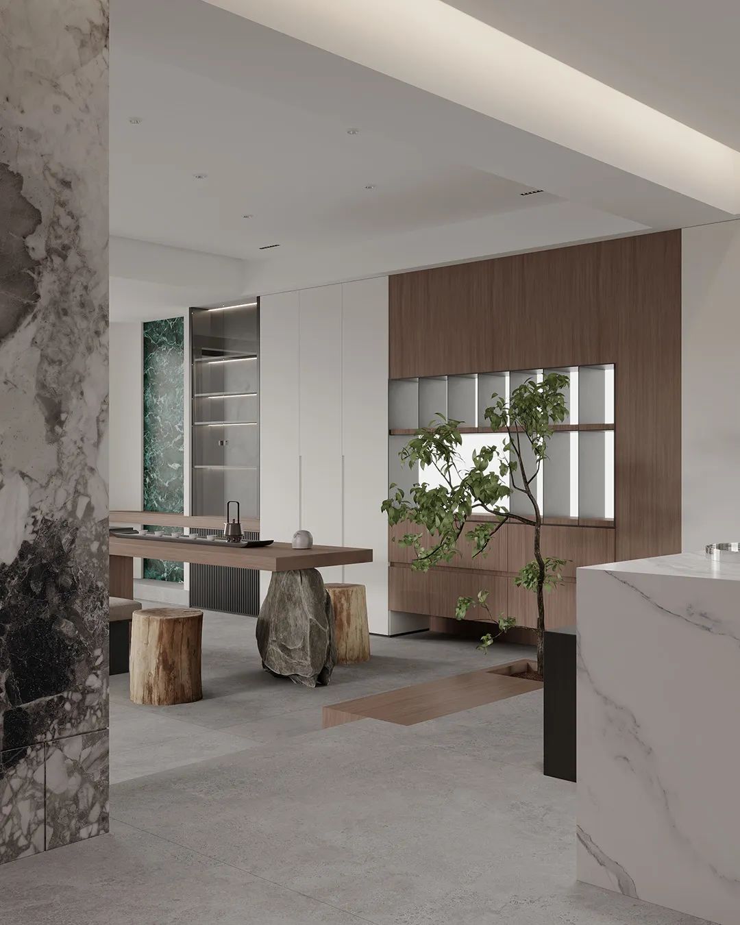 Star Gray thin porcelain slab flooring highlights the overall sense of high class